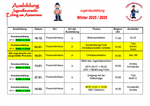 - Allgemeine Feuerwehrausbildung mit Vorbereitung auf den aktiven Dienst.